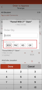 The order creation process from the app will now have the optional order unit as one of the parameters same as the web version. This can be used while selecting item qty. It can be set for any product from the web version.