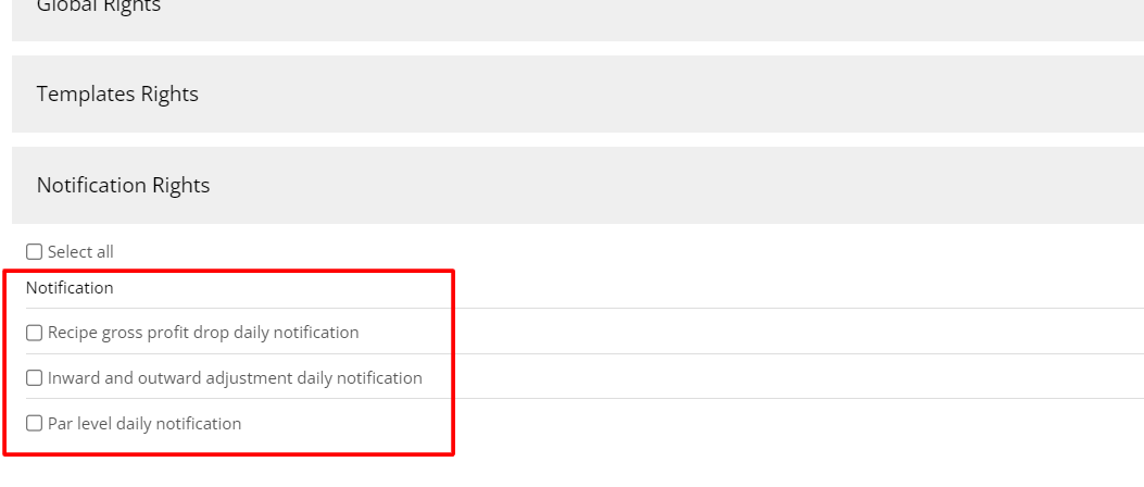 Users can now be notified with the previous day's data of GPDrop, Par level drop & adjustments recorded in the system. Enabled users will get a daily notification email with the details at 4 AM GMT. Notification can be enabled from User Management > user > Notification Rights.