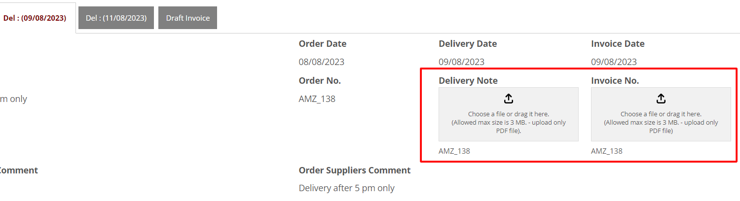 For uploading invoices in the delivery, the drag and drop option has been enabled to upload a file on the system. The choose & upload option can be used as well. This will be accessible while accepting deliveries on the database or uploading the accepted deliveries from the "List Deliveries" option. This option is available only for web version.