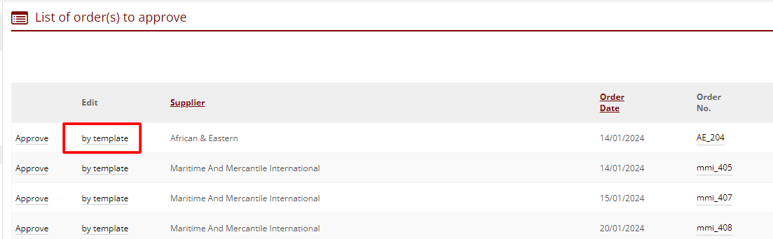 After creating orders, a filter for reviewing/editing products with quantity has been added under by template option in the approval stage. Please note, this isn't an auto-save page so any changes made should be saved manually using the "Save order" option.