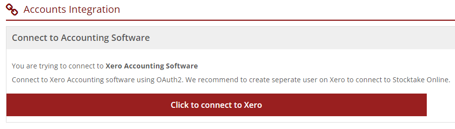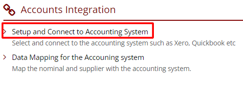 Stocktake Online currently supports accounting integration with Xero, QuickBook & Zoho. Any user with admin rights will be able to process the integration. Go to Setup > System Setups > Account Integration. Select Setup and Connect to Accounting System.