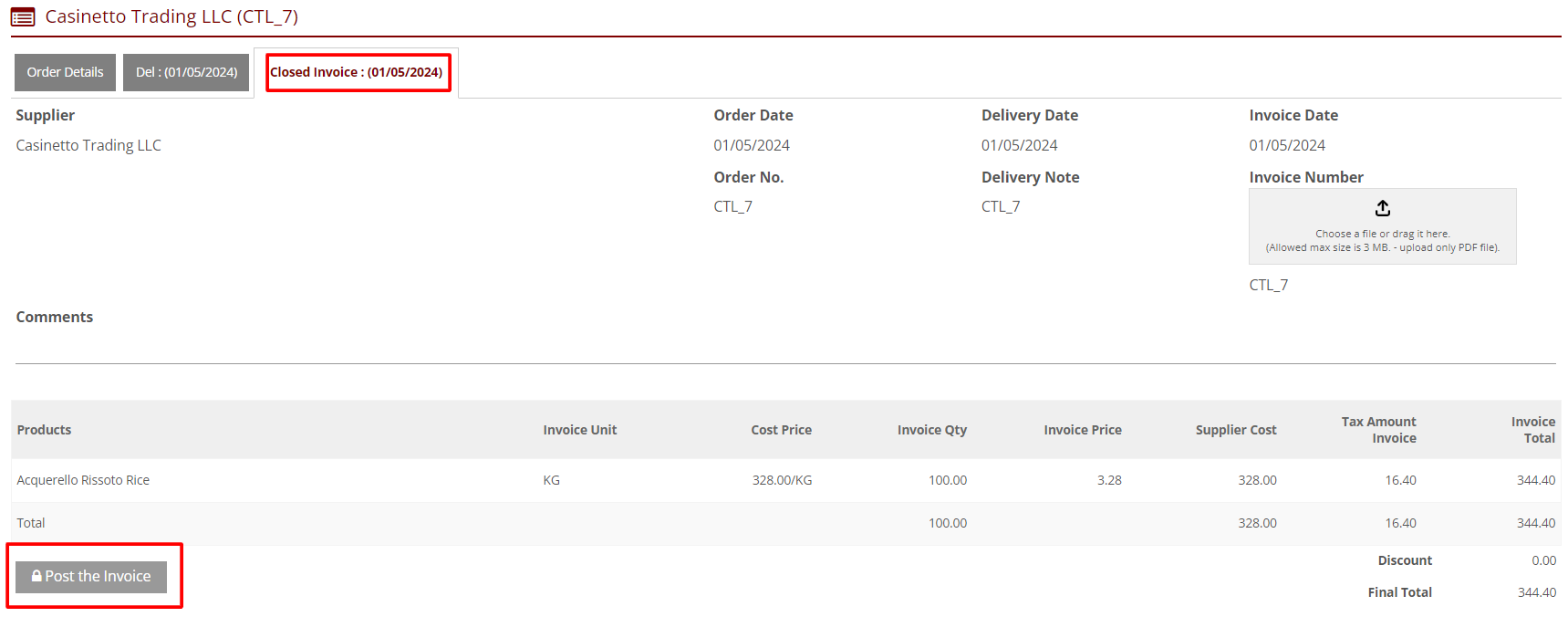 Note:- For partially delivered invoices where invoice references are different, two invoices need to be posted for the accurate data to be fetched & added for accounting. Once the first delivery is accepted, the invoice must be posted from List Deliveries & follow the same process of accepting & posting when the rest of the items are delivered.