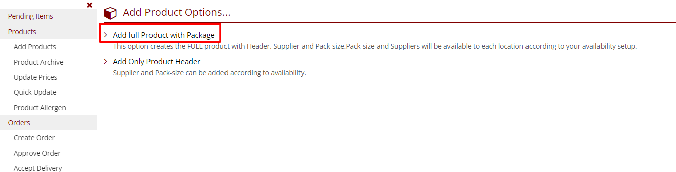 - Net Price: Enter the product net cost and select the size of the packaging for that cost.