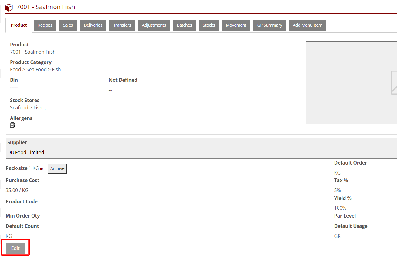 - Select Supplier - this is only editable if that product does not have any history attached to it.