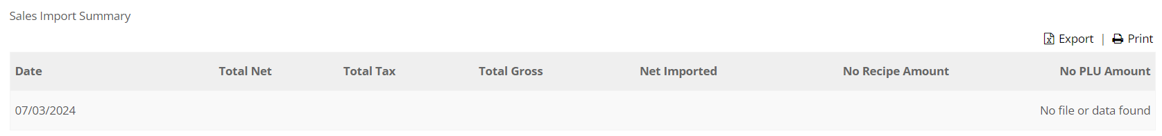- If there were no sales for this day, you will see 'No file or data found' as expected. If there should be sales but they are not present, further steps may be required. You may need to contact the STO Support Team or your EPoS provider for more details.