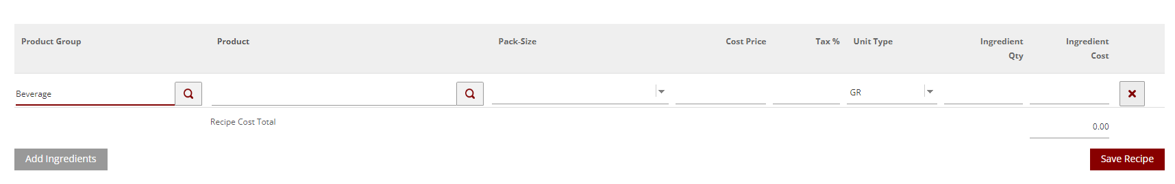 - The old method for recipe creation has a product addition process in a slightly different manner where you need to click on Add Ingredients followed by updating other details as listed below.