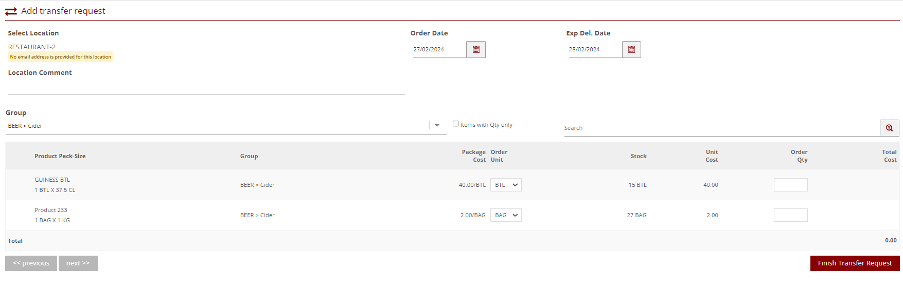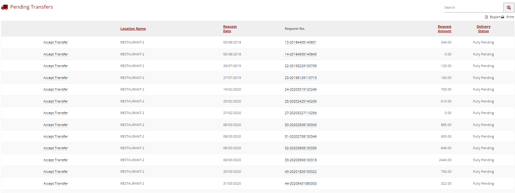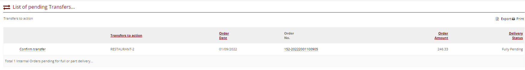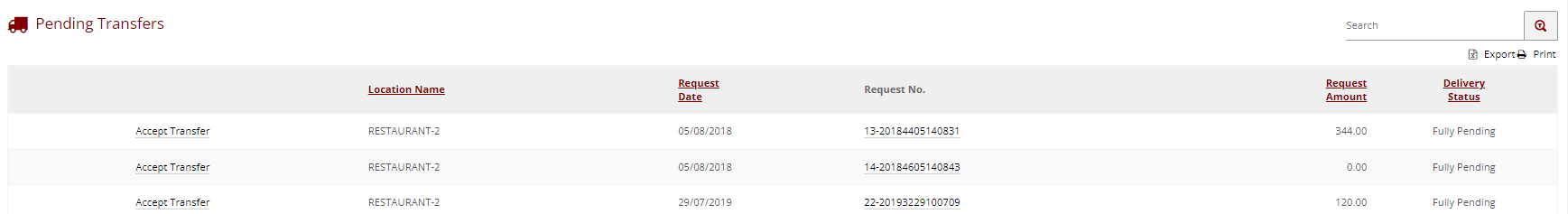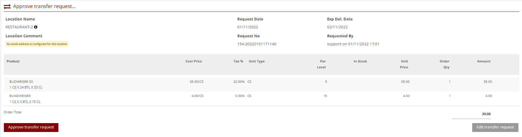 - Transfer Requests are approved in the same way as orders, and once approved they will be sent to the target location, and a Transfer PDF will be generated.