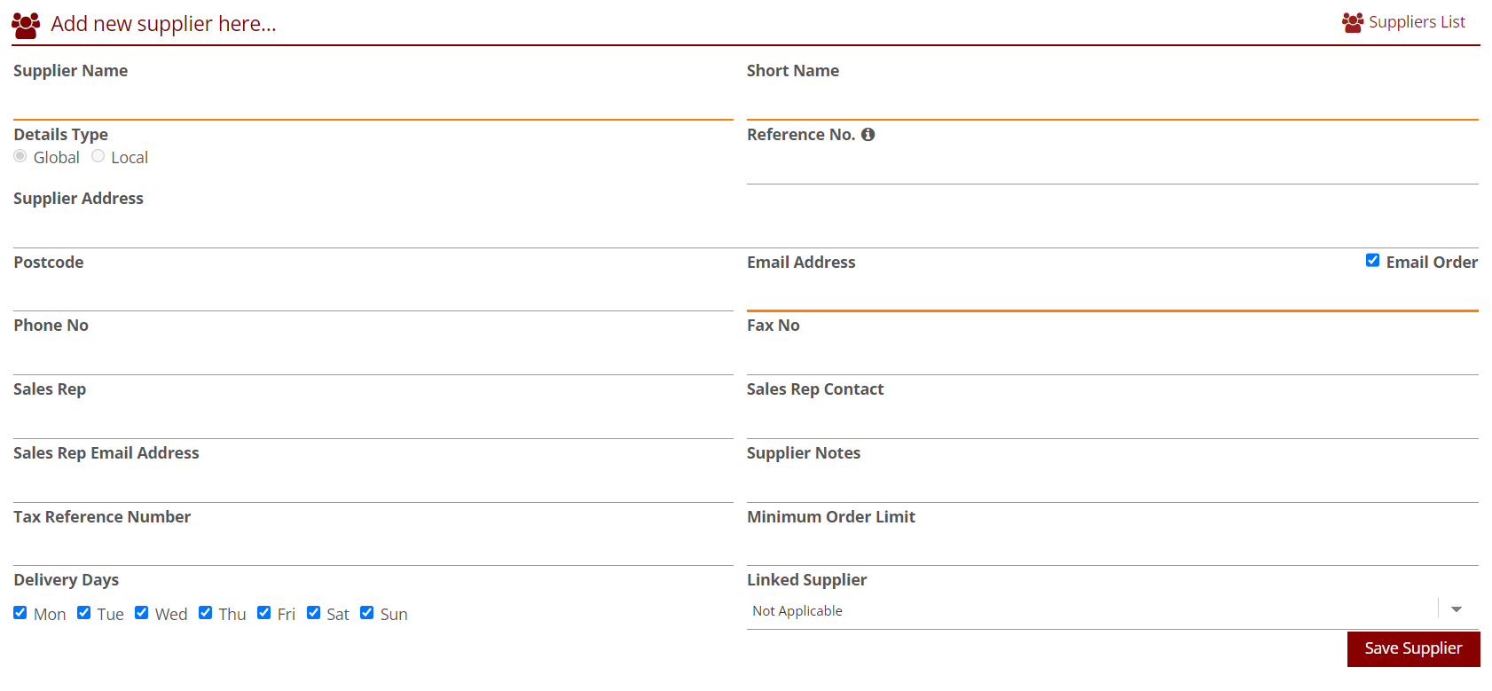 Stocktake Online only requires a small amount of information to add a supplier, those details (highlighted below) are: