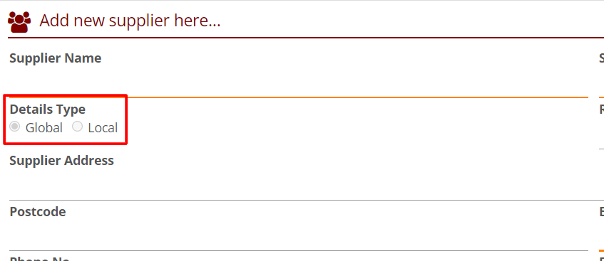 Global is the default position, and this means that if the supplier is allocated to another location, it will keep the same details. If local is selected, you can enter separate details for each location.