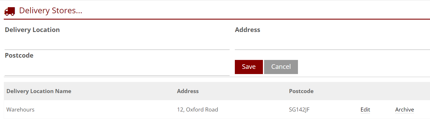 - You can use the Edit or Archive options to the right of your saved delivery locations to edit or delete them.