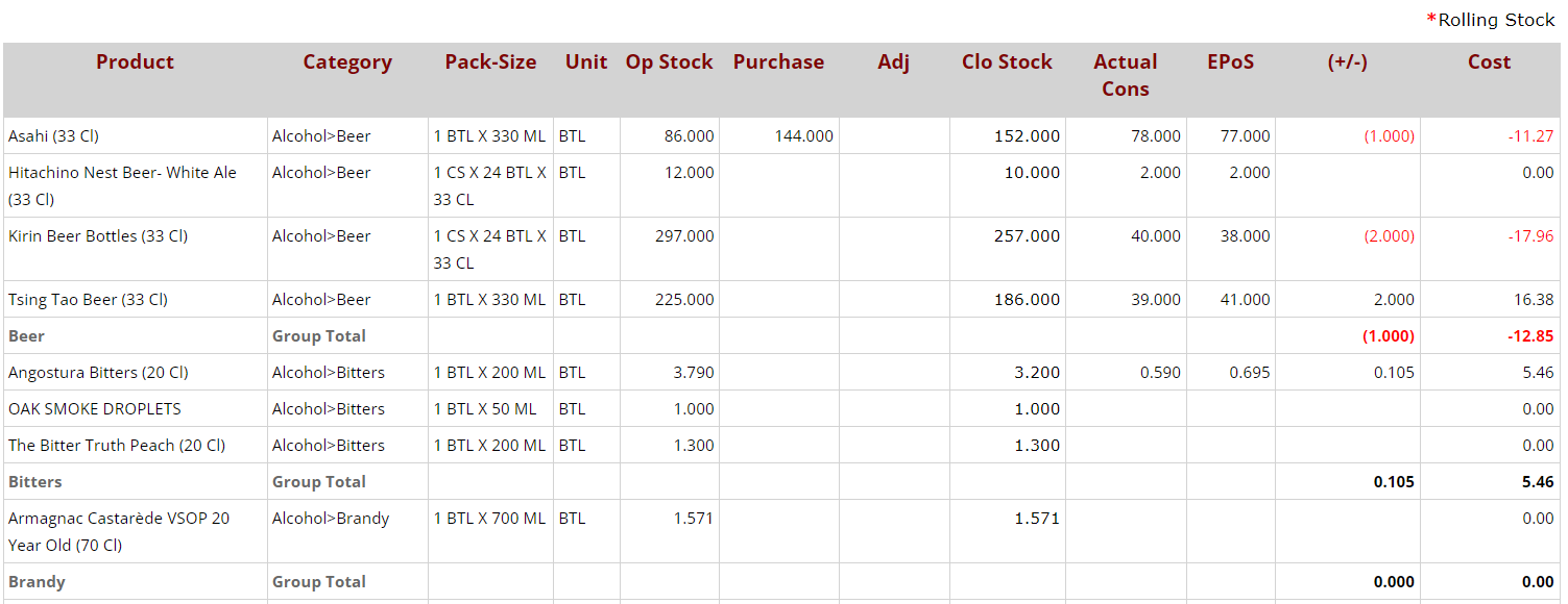 - Use the drop-down menus to select the Section/Category/Group and periods you wish to view consumption figures for.