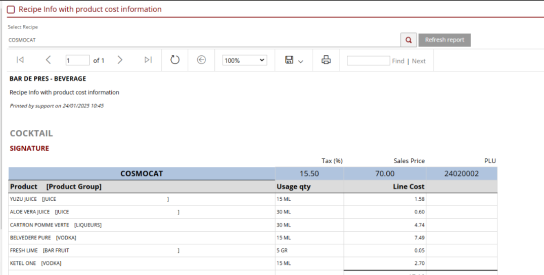 A new report has been added under Reports > Batches and Recipes > Recipe Info with product cost information.