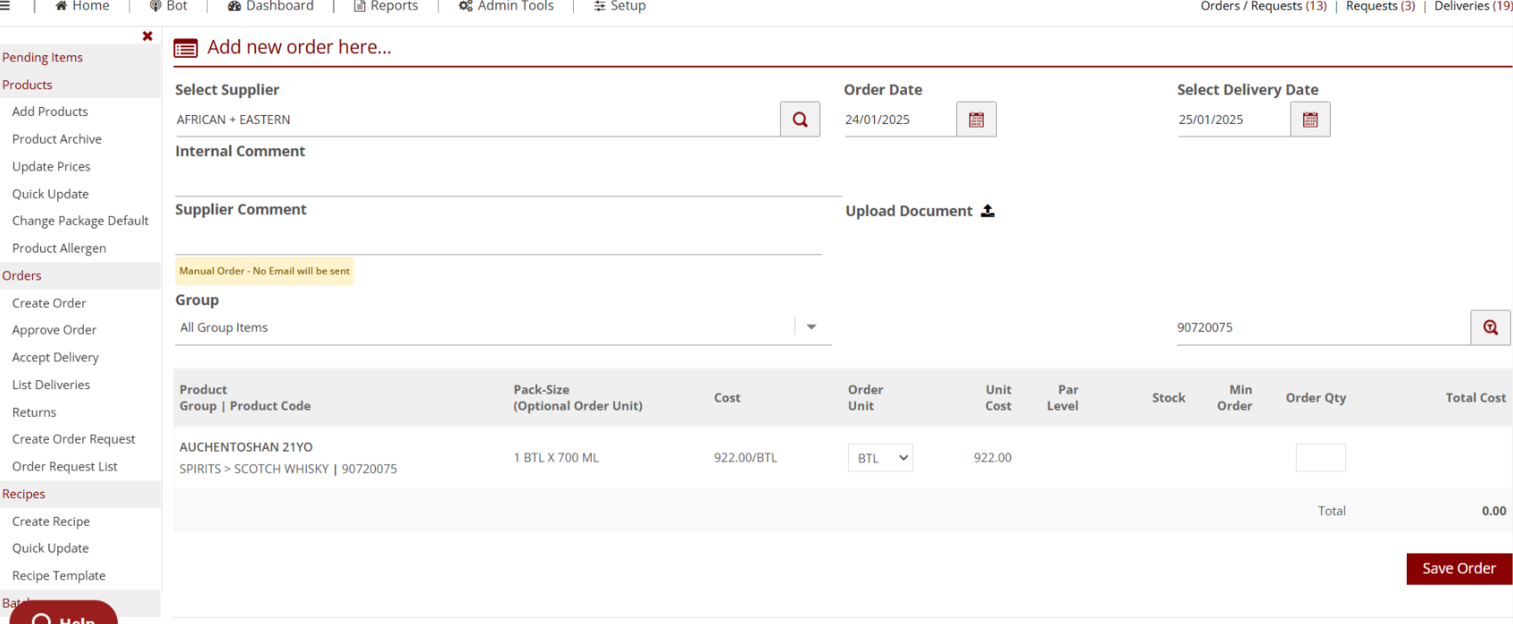 Please note this is for both manual and normal orders. This will work independently for all the locations in the database. The location admin can change the defined budget at any time.