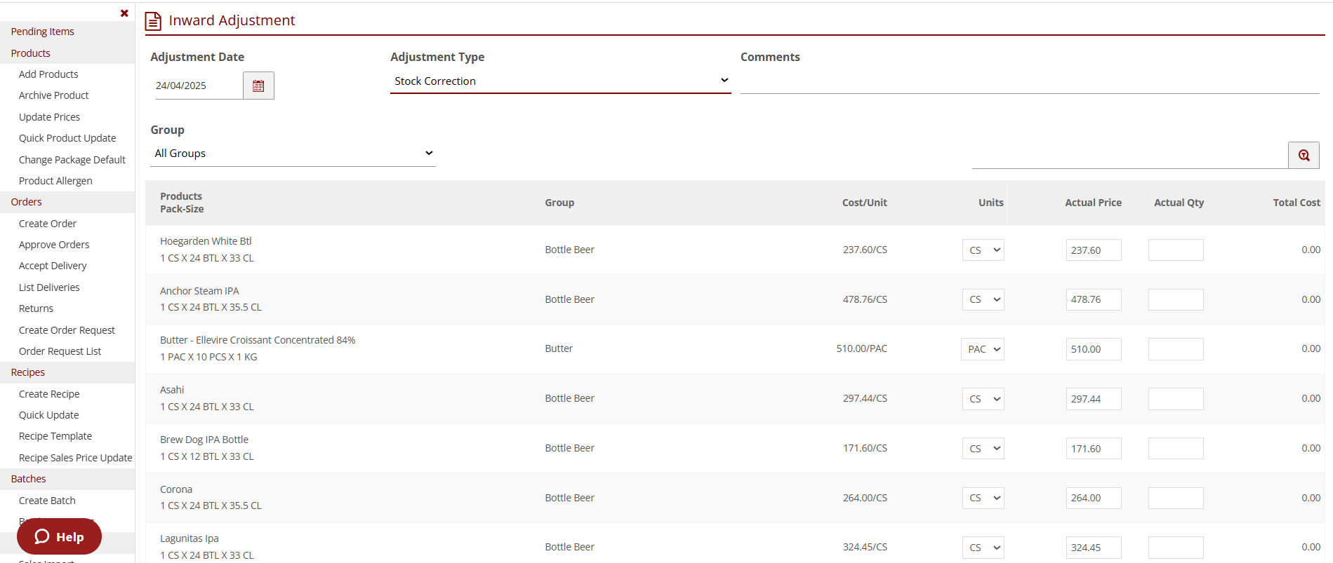 While recording inward/outward adjustments, admins can now modify the price only for the specific products that require a change. The system will automatically reflect the default price for all other products, eliminating the need to manually enter prices for each item, thereby streamlining the adjustment process.