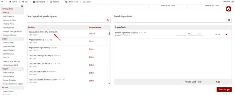 While adding ingredients to a recipe, the system price for each product will now be visible directly on the recipe creation page, enabling more accurate and informed cost planning.