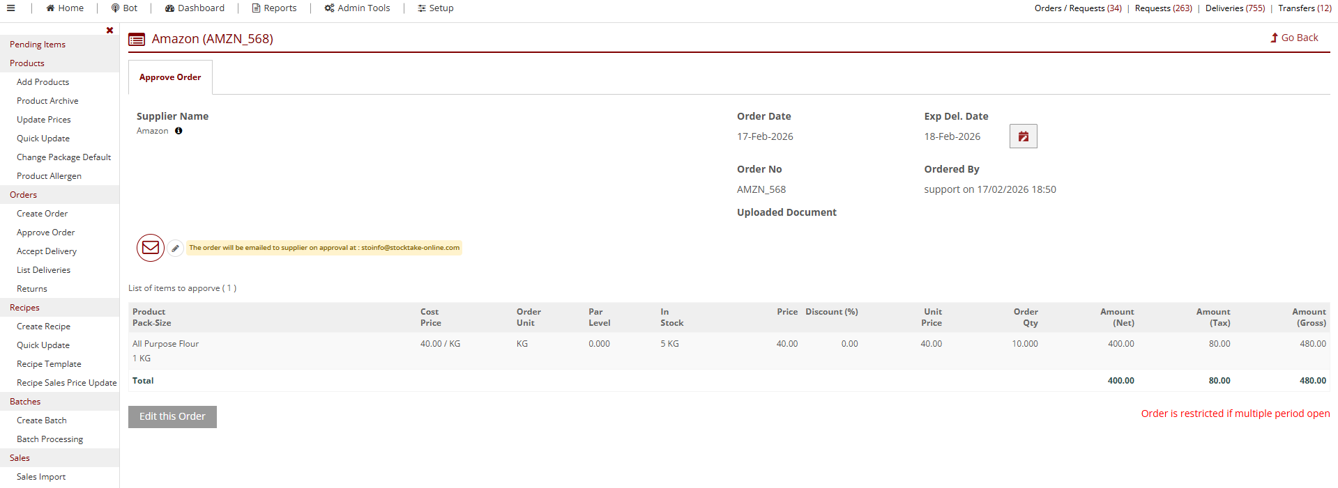A new feature prevents order creation for the current period if any previous periods are still open. To enable this, please contact STO Support.