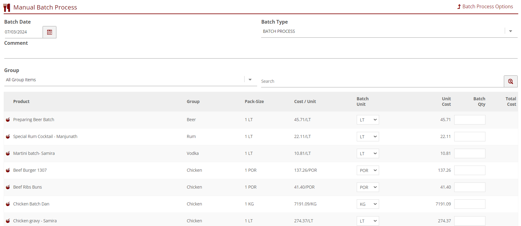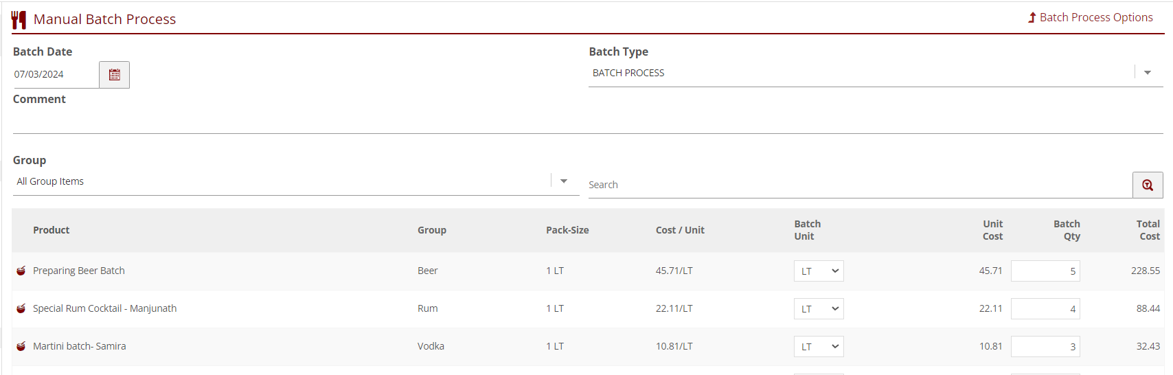 The Manual Batch Process is the most accurate way for the system to calculate your batch usage. This is equivalent to ordering raw products for your batches.