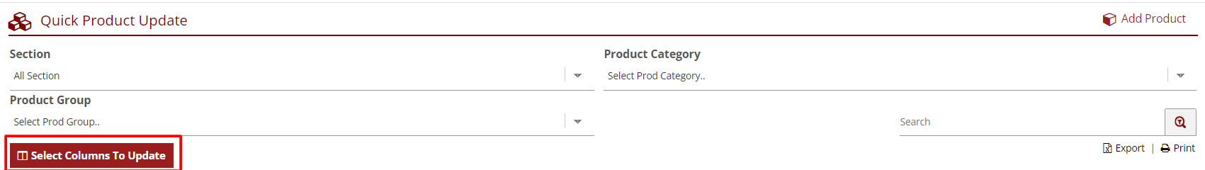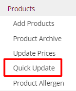 - Select Quick Update from the Products section of the main menu.