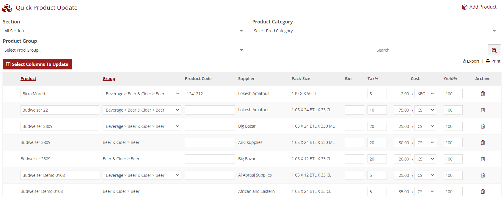 The Quick Update page for products will allow you to instantly update a large variety of information about your products.