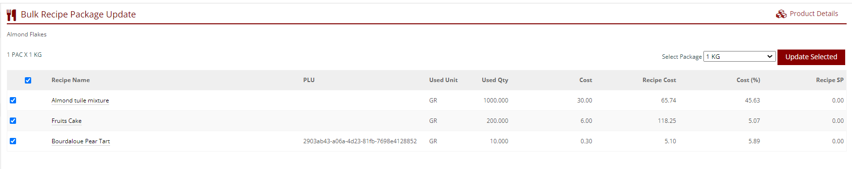 - Once you have selected the recipes to change, click on the button "Update Selected".