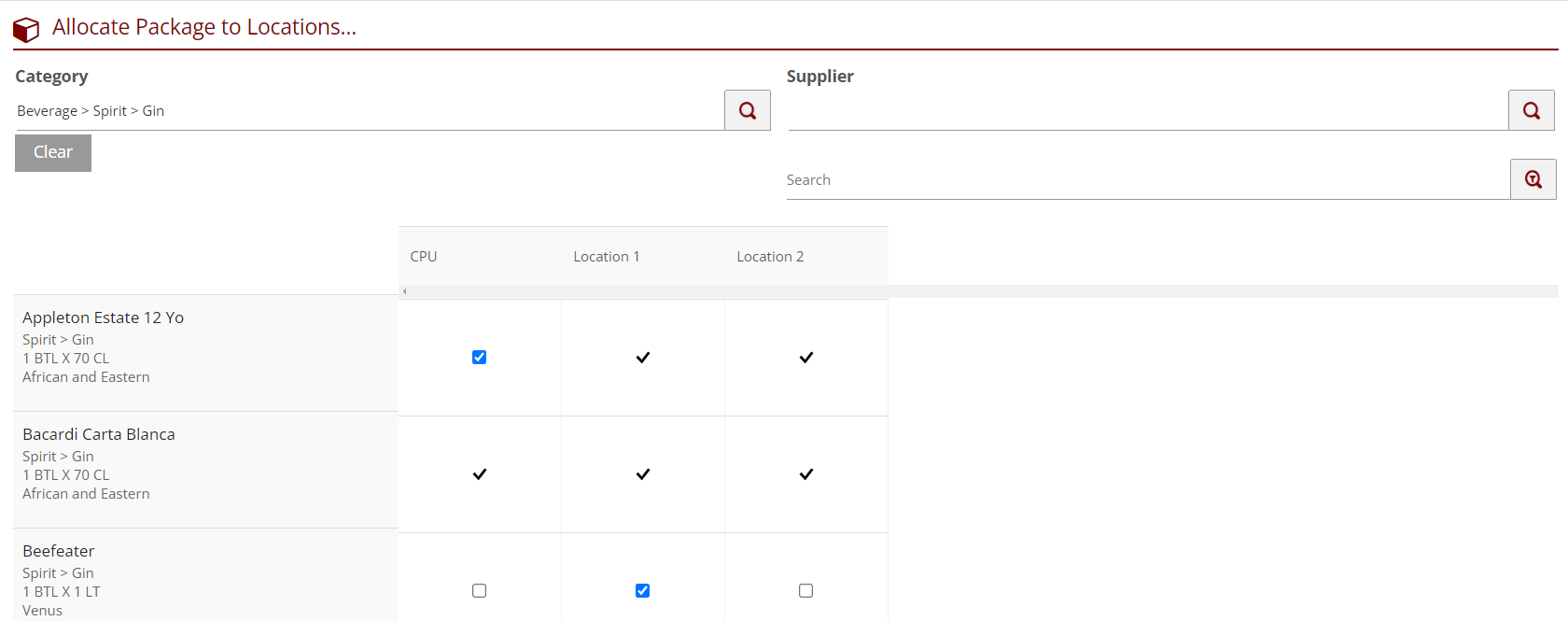 - Allocating a package will automatically allocate the associated supplier and product header if they were not already active in that location.