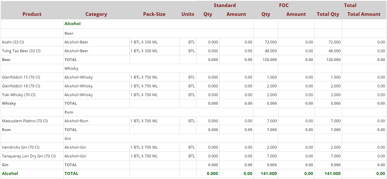 - Total Amount - the total amount of standard and FOC products delivered