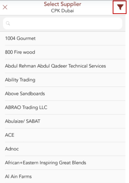 - A list of your suppliers will be displayed, which you can scroll through or use the search bar to navigate.
