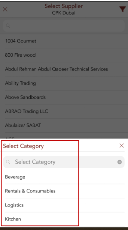 - The filter symbol at the upper right corner can be used to fetch list as per the categories.