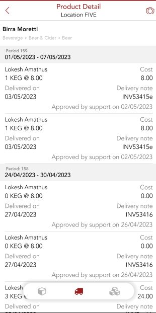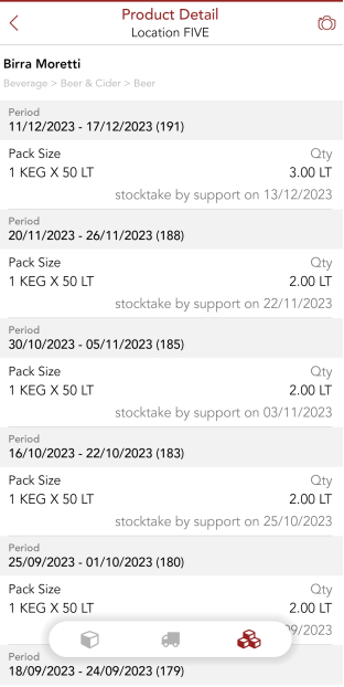 - Deliveries & stocktake for the product can be checked using the respective symbols on the product details page.