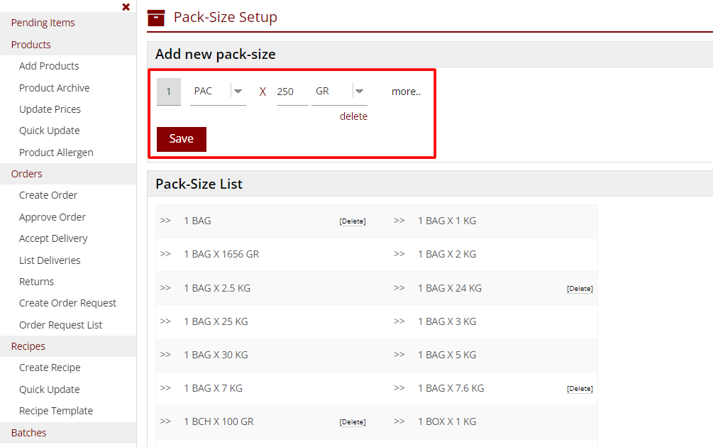 Add a pack size of your choice (select the unit from the drop-down). You can keep the pack size up to 6 units.