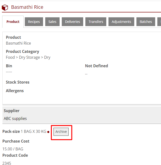 Packsize will get changed in the product. Please note archiving wouldn't be allowed if the pack size is active in any of the lists, refer to Archiving Products & Batches for details.